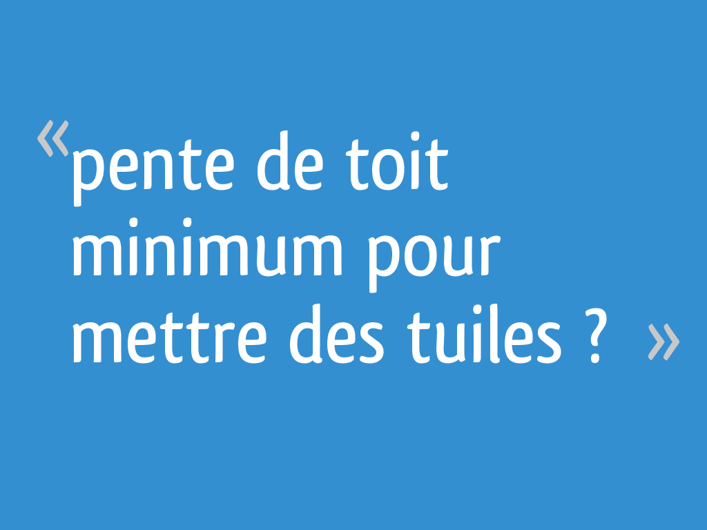 Edilians toiture est leader français des tuiles en terre cuite. Pour une toiture en tuile la pente va de 13 à 45 en fonction du type de tuiles. Le degré de pente ou le pourcentage selon la façon dont on le présente influe également sur la. L ardoise à besoin d au moins 26.